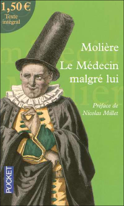 Lesujet du Médecin malgré lui vient d'un conte du lointain Moyen Âge. Une femme se venge de son ivrogne de mari en prétendant qu'il est médecin, ce qu'il n'avoue que sous les coups de bâton. Ce mauvais mari contraint de guérir une fausse muette, c'est Sganarelle. Non plus leSganarelleridiculedes premières farces, mais un paysan rusé, un peu instruit et beau parleur, effronté comme pas un. Sa lâcheté, sa paresse, sa paillardise : on lui pardonne tout.